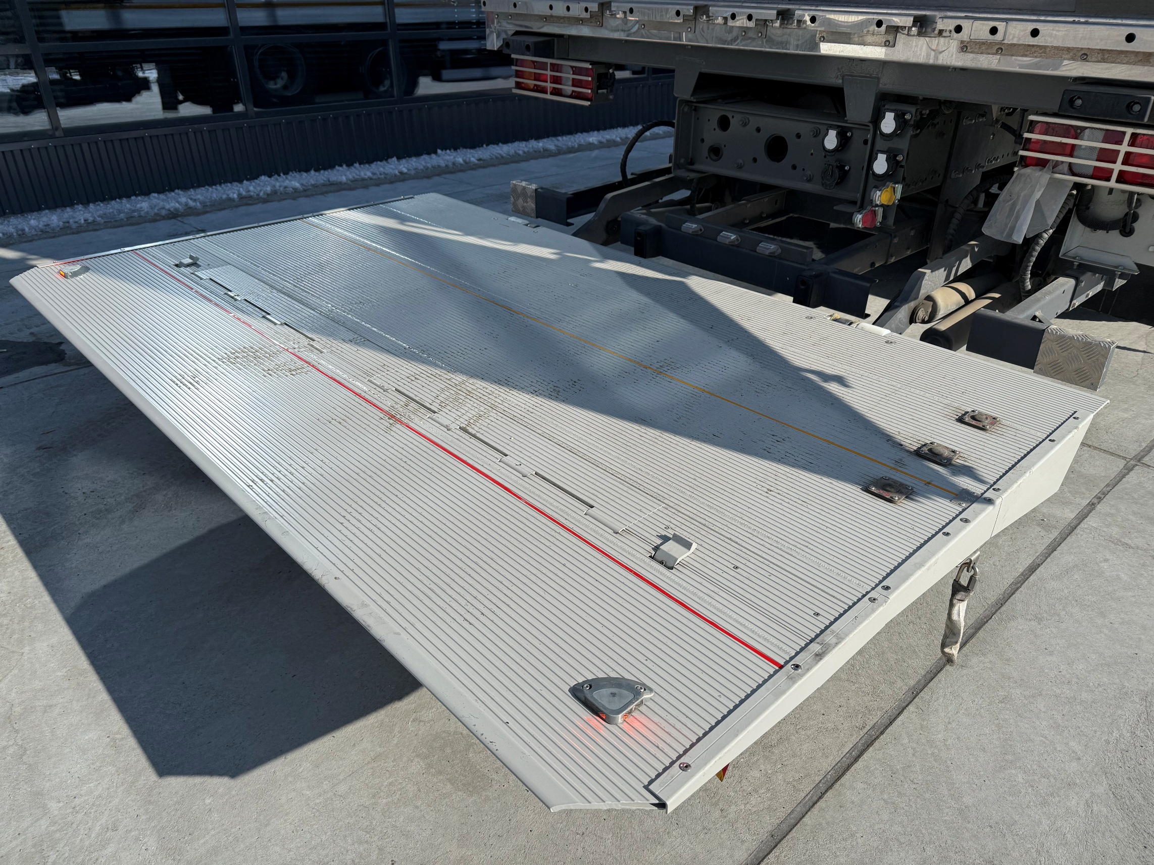 Гидравлический подъемник — гидравлическая задняя панель из алюминиевого сплава ГП 2 тонны (CADRO, с перегородкой, угол 90°, высота 100 мм), три секции заднего бампера, фиксированная установка, с беспроводным дистанционным управлением (Kezolli, модель с перегородкой, угол 90°, высота 100мм)