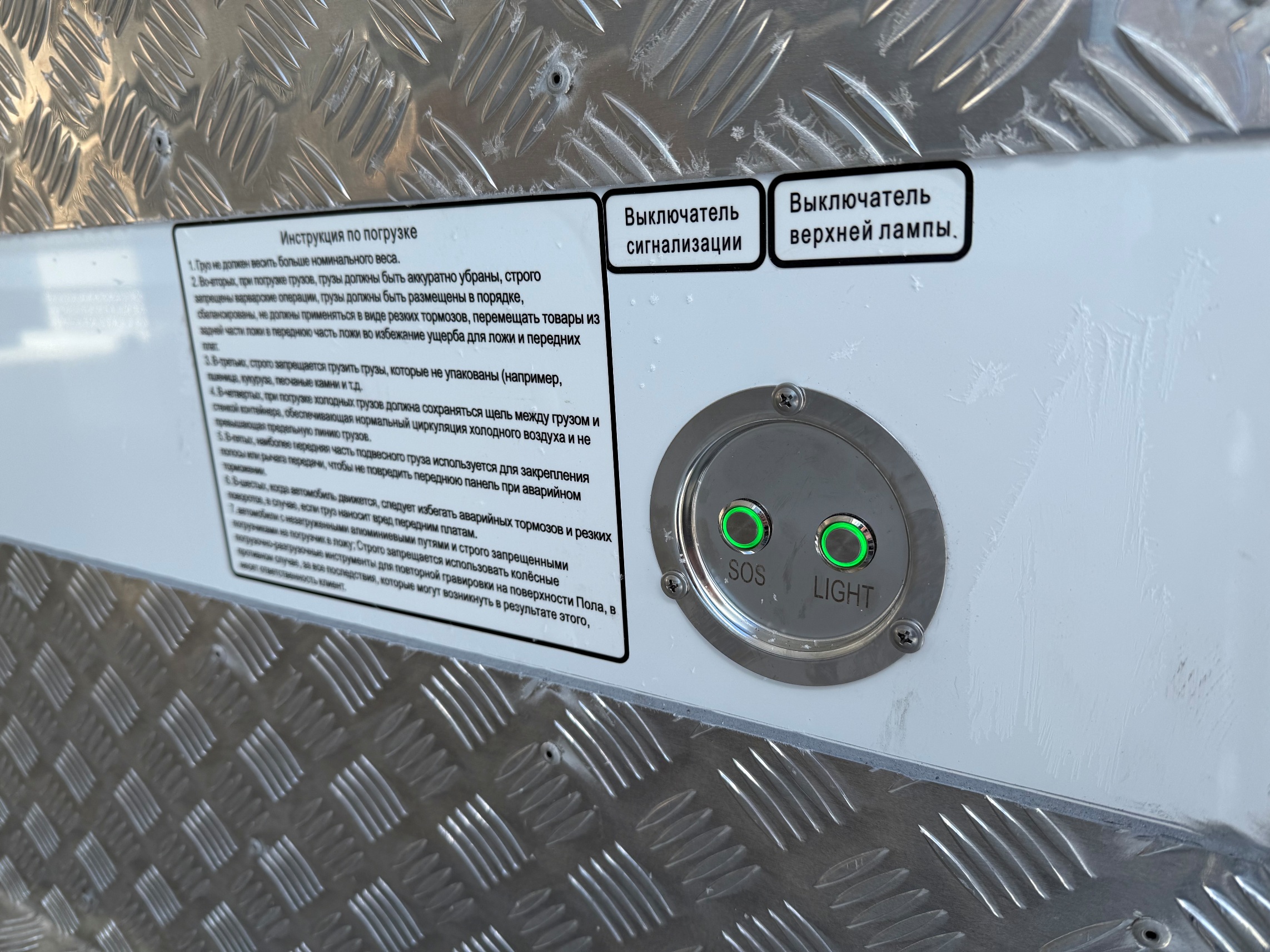 Рабочий свет внутри коробки — 6 встроенных потолочных светильников, выключатель справа