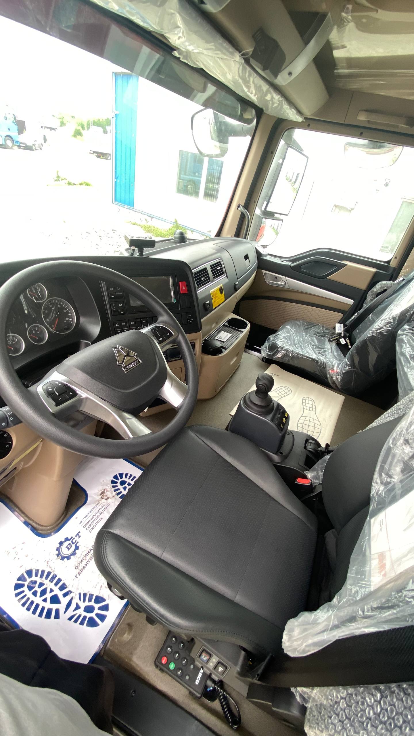Кабина T5G-F: одно спальное место, обтекатель, автономный отопитель, MP5, нагрев электрического зеркала заднего вида, четырехстороннее видео